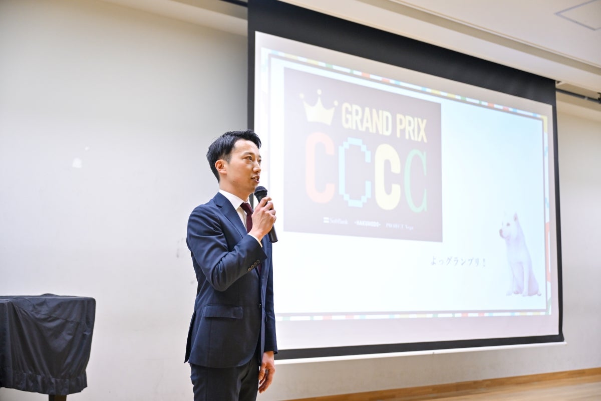 そして迎えた3月19日。全25チームが集結して最終プレゼンが行われました。ソフトバンクと博報堂から合わせて6名が審査員として参加。最終プレゼンに際し、近山より3分間の制限時間を厳守することと、「とにかく、元気よく、迷ったら面白いほうで!別解の発想で楽しく今日のプレゼンに臨んでください」との激励があり、スタートしました。