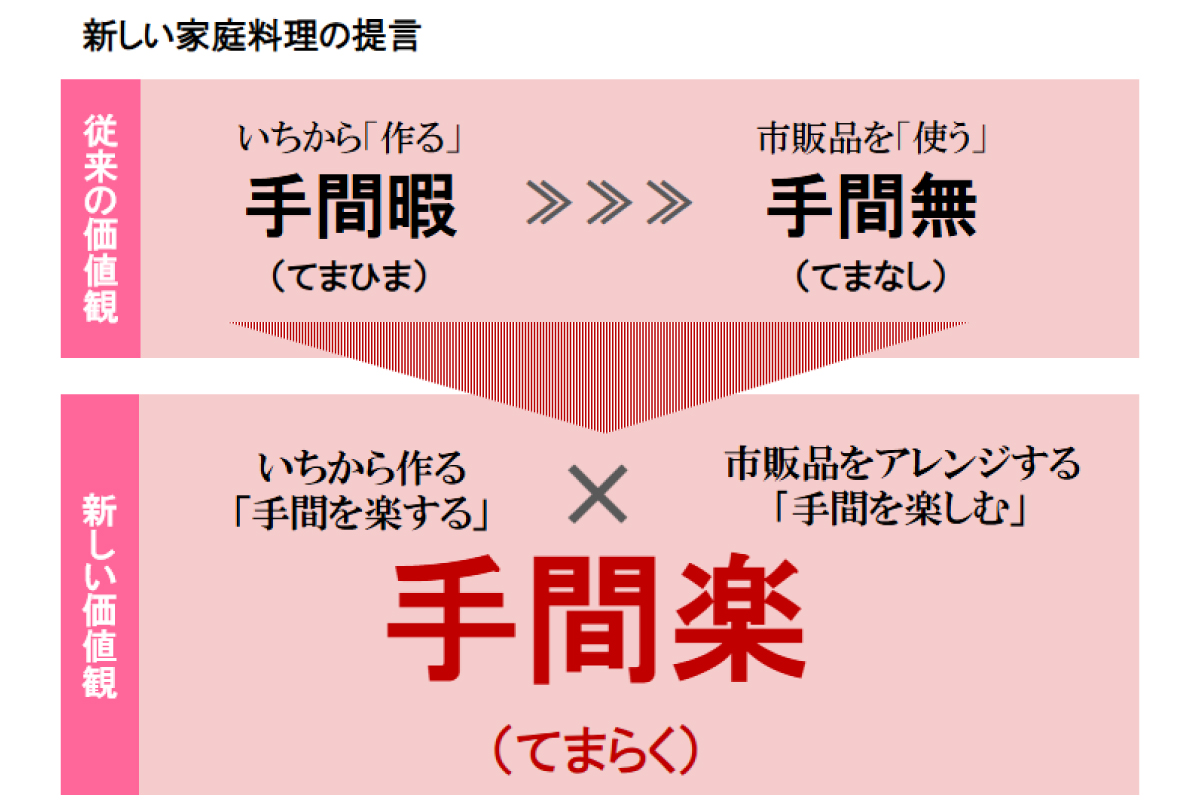 いちから作る手間は“楽”していいし、市販品をアレンジする“楽しさ”も味わえるという意味です。この「手間楽」で手作りの範囲を広げ、ハードルを下げることで、これまで調理をしなかった人が取り組みやすくなったり、料理好きが増えたりしたらうれしいです。