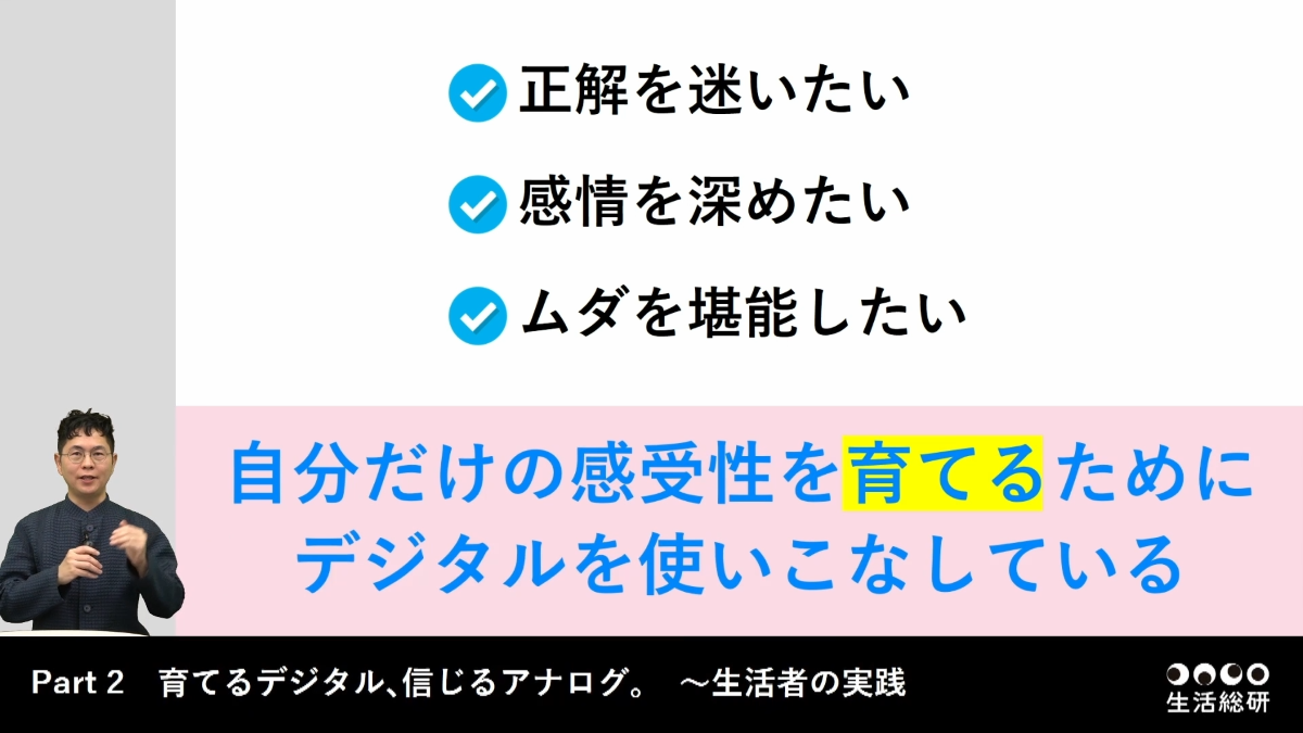 □自分だけの感受性を育てるための『育てるデジタル』 効率や正解を提示するツールを、あえて非効率に使いこなし、自分の感受性を育てる動き。