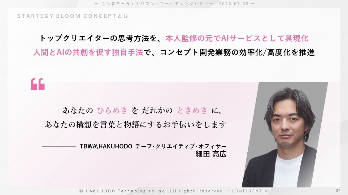 ~AIと共創し、マーケティングビジネスの効率化と高度化を支援する~ 統合マーケティングプラットフォームCREATIVITY ENGINE BLOOM 活用事例【セミナーレポート】【後編】