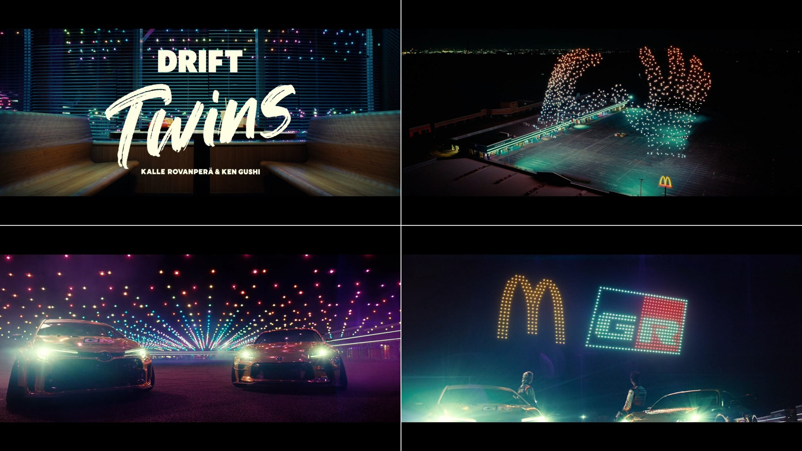 スポーツカーの魅力とともに想像力を届けるべく、世界トップドライバーの2人が操るドリフトカーと、1000台のドローンを駆使して、子どものミニカー遊びを完全再現する映像を制作した。