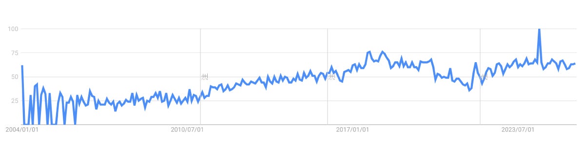 ▼「スナック」(「ビジネス・産業」カテゴリ)の検索数推移