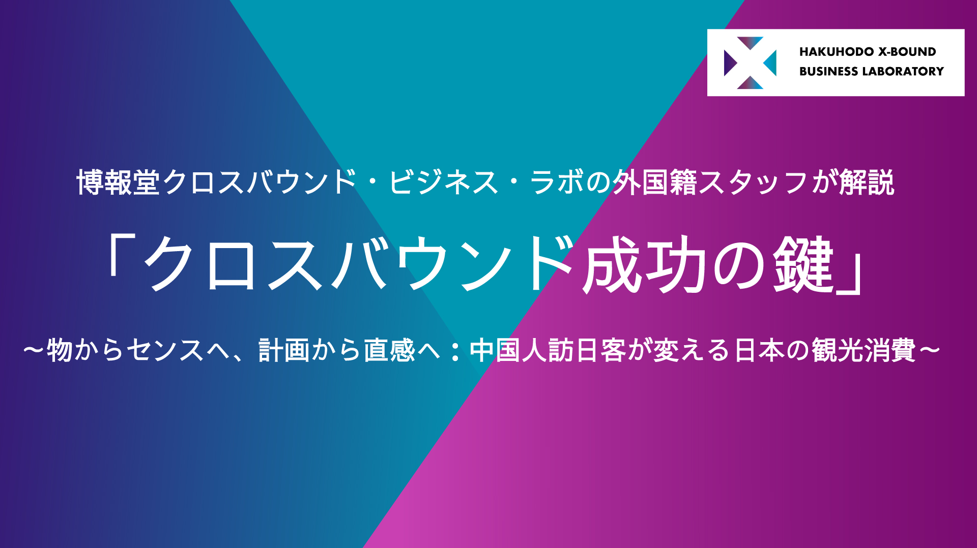 ポストコロナ期の中国人訪日客は、物質的な豊かさよりも精神的な豊かさや美的センスを重視し、計画的よりも直感的な旅を楽しむ傾向があります。旅行コンテンツ、店頭体験、プロモーション、クロスバウンド型施策を組み合わせることで、訪日前・訪日中・訪日後を通じて魅力的な体験を提供し、購買や再訪につなげることが可能です。今こそ、この変化をチャンスに変え、未来のインバウンド戦略を描く時です。