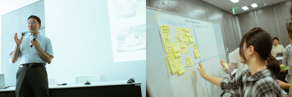 道家氏・滝澤氏の講義のなかで印象に残ったエピソードやキーワードについて各チーム内で共有したあと、この日最後のインプット。Day2のフィールドワークに向け、大広 未来共創局の柴田笙子から、「フィールドに出て学ぶ意義とは。フィールドワークで得られた気づきはどのようにアウトプットに生かされるのか」について講義が行われ、人と自然どちらの視点も組み込み検討する大切さや、フィールドワークでの観察のポイントなどが説明されました。