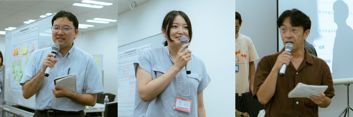Hasso Campをプロデュースする博報堂DYホールディングス マネジメントプラニングディレクターの永田奈々子・豊嶋帆奈美・中溝修平は、「Hasso Campでは、一人ひとりの考えや個性を尊重し、それが混ざり合うことで新しい発想が生まれる、そんな“共創”の力を大切にしています。社員と学生が一つのチームとなり、社会課題の重要なテーマについて議論し発想するという体験を通して、将来人材の未知なる答えを導き出す発想力を育み、社会課題に取り組む仲間を増やしていきたいと考えています。」と語りました。