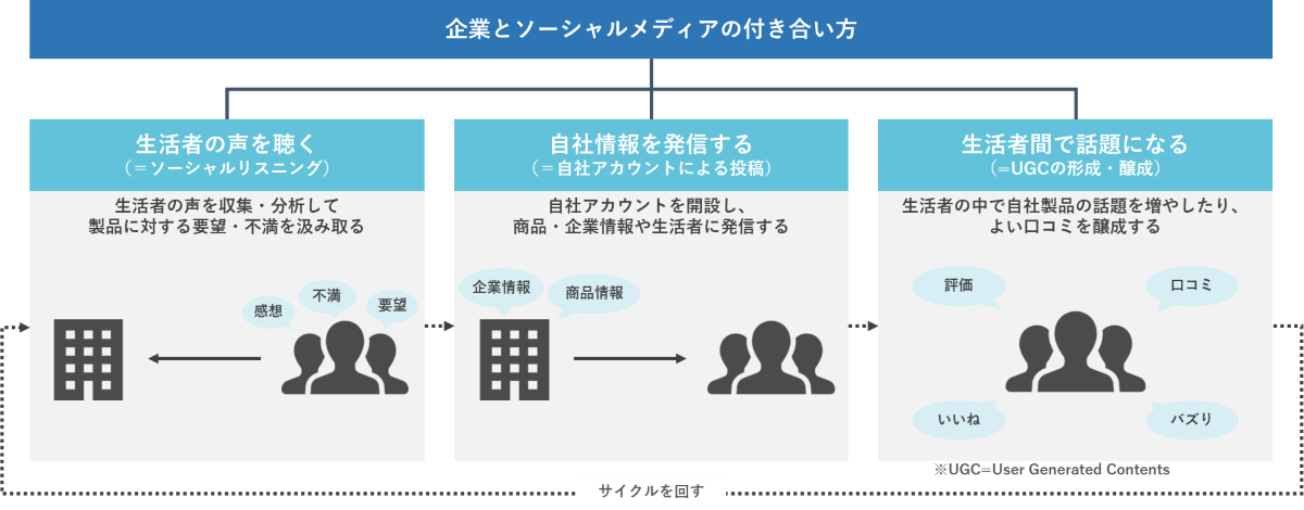 従来の「企業が発信する情報」だけではこの信頼は得られません。そのため、ソーシャルメディアを単に「発信する場」として捉えるのではなく、生活者の声を聴く場、そして生活者間で共感を形成する場として捉えることが、事業成長において重要です。