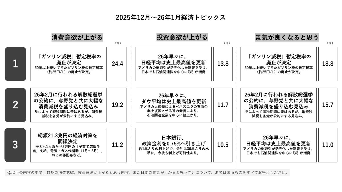 2025年12月から1月半ばまでに起こった金融ニュース・トピックに対する生活者の関心を全国1,000名にWEB聴取しました。