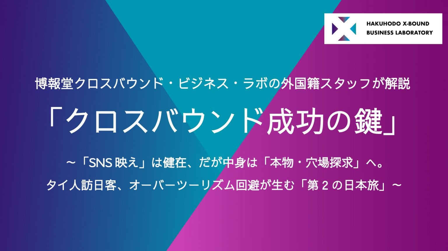 したがって、タイ市場におけるクロスバウンド戦略は、「日常的なリピート購入」を狙うよりも、「日本でしか買えない・体験できない価値」をSNSで発信し続け、ブランドへの憧れを維持させることに注力することも一つのアプローチだと考えられます。