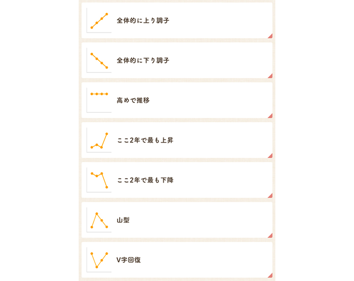 「V字回復してるのはそういう項目なんだ」とか「ここ2年で最も上昇してるのはそれ?」とか