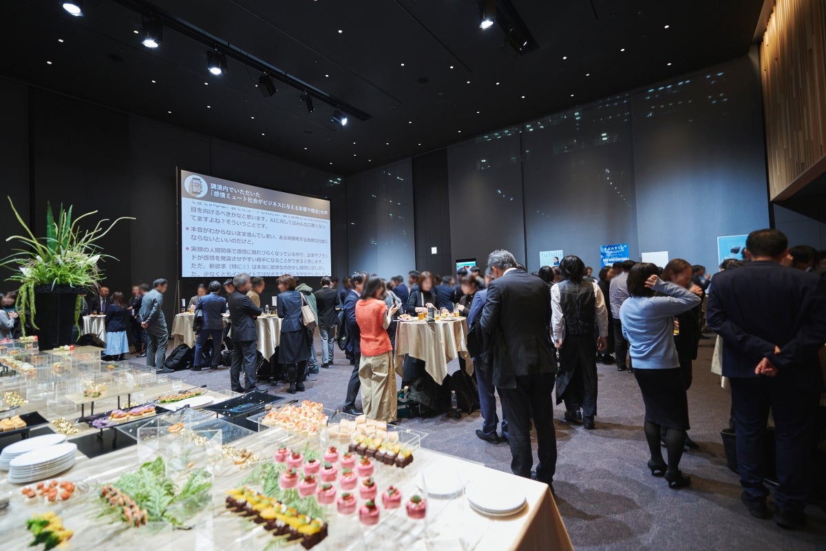 軽食とお飲み物をお楽しみいただきながら研究員と意見交換をするほか、講演内でもご紹介した「絶対に炎上するSNS」を会場限定で体験いただいたり、生活者発想技術研究所が開発したプロダクトを手にとっていただいたりと、感情ミュート社会の研究を広げ深めて考える場としてご活用いただきました。
