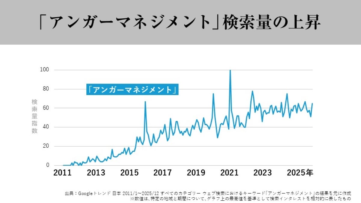 □「アンガーマネジメント」「感情 コントロール」などの検索量が年々増え続けていることに着目