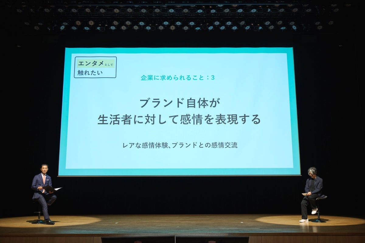 3つの新欲求を受けて生活者が企業に求めることについて、帆刈所長と博報堂執行役員エグゼクティブクリエイティブディレクターの嶋との対談形式でお話しました。