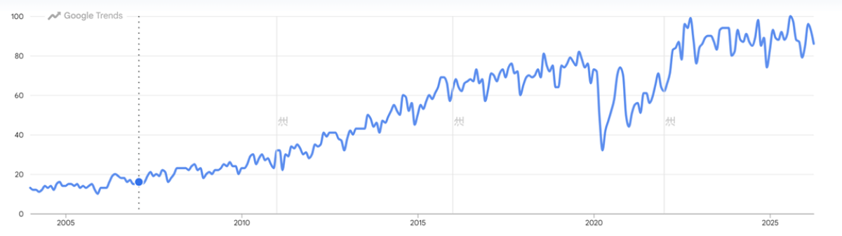 ▼「朝食」検索量推移(2004年以降・日本)
