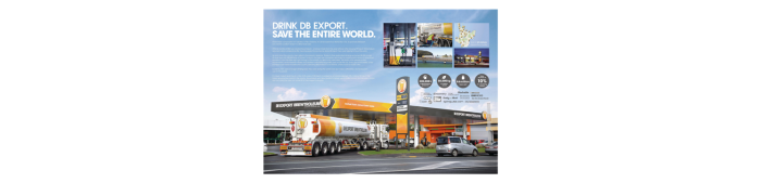 ニュージーランドのビールブランドDB Exportによる、ビール生産をする際に出る副産物から燃料を抽出するという施策。本物の燃料スタンドをニュージーランド中に建築。その数、50カ所。ちなみにBrewtroleumとは、「Brew=醸造」と「Petrolium=石油、原油」を組み合わせた造語であり、「ビール粕燃料」という意味になります。