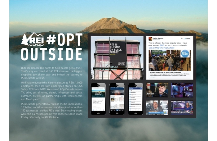 (1)REI 「#OptOutside」(外に出よう) チタニウム部門のグランプリ