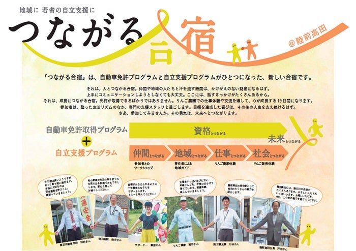 山田:そうです。2015年には岩手県陸前高田市で、若者の自立支援になる自動車免許合宿「つながる合宿」を実施しています。「つながる合宿」の原案を得たのも、被災地のベンチャー企業と一緒に、被災地に人を集める新事業を考えた「東北復興新事業アイデアソン」によるものです。その中で優秀賞を取ったアイデアは、もともとは「農業体験付き合宿免許」というアイデアでした。さらに、NPO「育て上げネット」、陸前高田市、地元自動車免許センターに参加していただき、ニートなどの若年無業者の自立支援を目指す「つながる合宿」という実際の事業になりました。