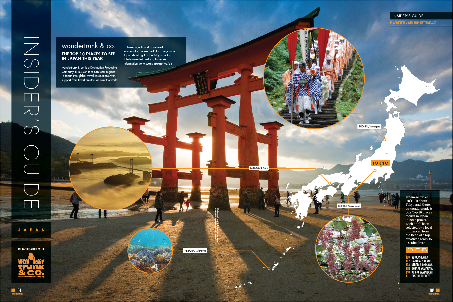 いま訪日外国人の80%以上は「アジア」からの旅行者です。2020年・2030年にむけて、より多くの人に来てもらうためには、日本の多様な魅力をとくに「欧米」の旅行者たちにも知ってもらうことが重要です。そこで我々は、2017年1月にイギリス最大の旅行専門フリーマガジン「Escapism」誌(*1)とタッグを組み、「wondertrunkが注目する 今年いくべき日本の10の地方デスティネーション」を発表しました(*2)。この特集は、ロンドンで開催されたThe Telegraph Travel Showという旅行博イベントでも配布され、イギリスや欧州の旅行業界の関係者に紹介していただきました。