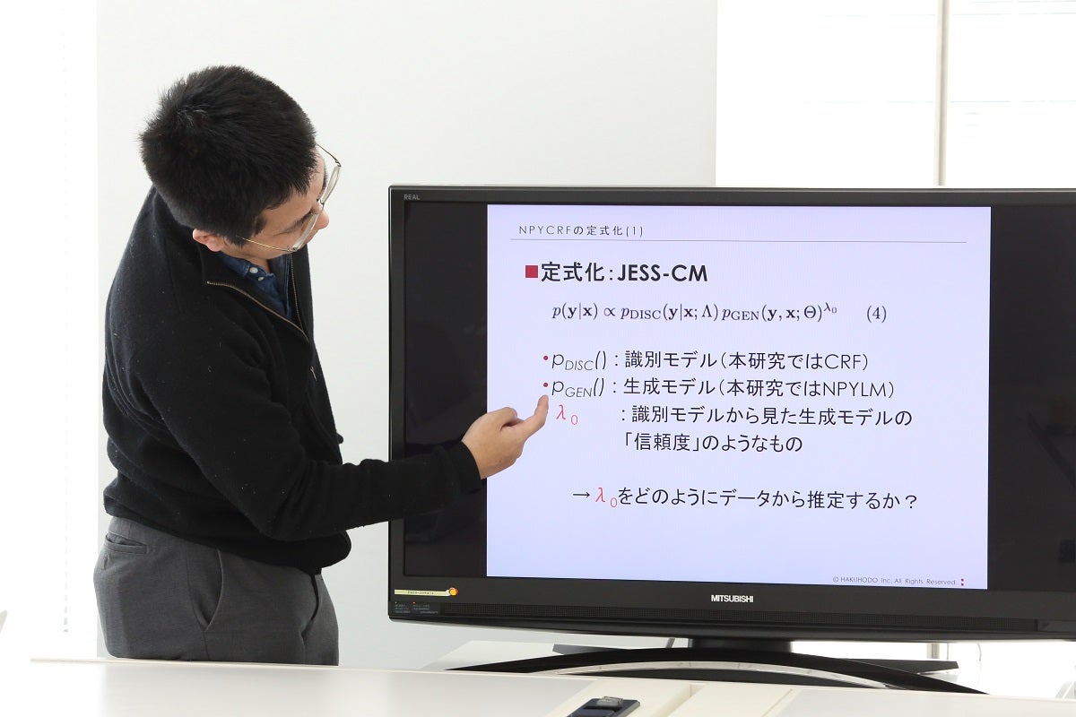 くだけた日本語に対応できる単語分割技術について様々な文献を調べたところ、「統計数理研究所の持橋大地先生が書いた論文であれば問題を解決できそうなことが分かりました」(藤井)。その論文について上司に報告したところ、「上司は『よさそうじゃん。じゃあそれ作って』と軽く言いました(笑)」(同)。