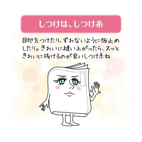 育休明けで復職した際、先輩からの言葉。しつけ糸は、きつすぎたり、ゆるすぎたりすると、きれいに縫い上がらない。簡単に抜き取れるように縫っておくもの。しつけに力が入ると、子どもも親も疲れ切ってしまう。めりはりを持つことは、子育てにも仕事にも通じるひと言。子どもの成長とともに心に染みています。(東京新聞2017年2月22日掲載)
