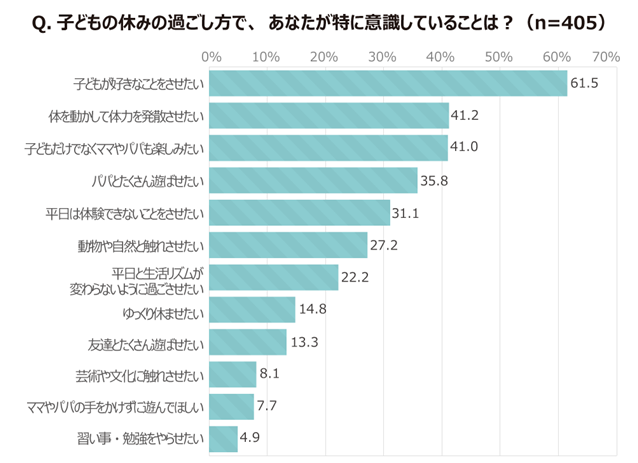 ・「子どもが好きなことをさせたい」が61.5%とトップに。