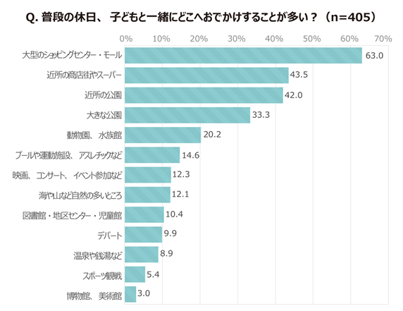 ・こどもとのおでかけ先のトップは「大型のショッピング・モール」で63%。