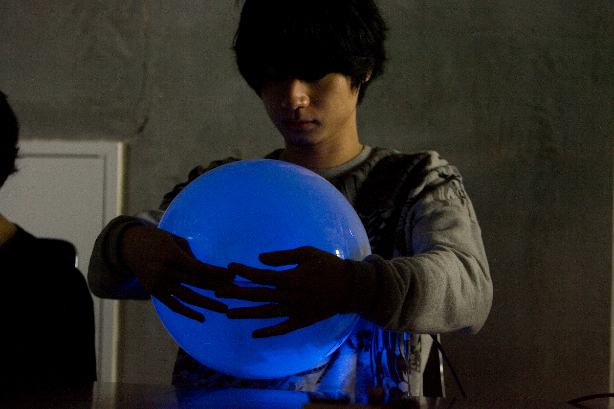 このツイートを落合さんにも共有し、昨年の秋頃からプロジェクトが本格始動しました。そもそもオーケストラジャケットは世界に二つしかないですし、簡単に量産できるものでもありません。かつ体験するためには運営面で人手と時間がかかるという問題もありました。じゃあどうしようかという議論からスタートし、「空気で風船を振動させ、それに触ってもらえばいいのでは」と打合せで盛り上がって、風船だったら材料費もかからないし、たくさんの人に体験してもらえるねという話になり、そこからイメージを膨らませて「SOUND HUG」を新たに開発しました。「SOUND HUG」はオーケストラジャケットの簡易版ともいえるもので、テンポとリズムを振動と色の変化で感じられる風船型のデバイスです。聴覚障害のある方には、これを抱きかかえるように持っていただいて、名前の通り“音を抱きしめる”ことでコンサートを体験していただくことになります。