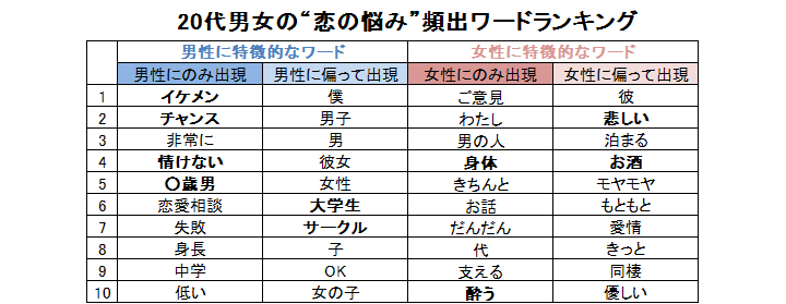20代、40代、60代男女の恋の悩みを分析。まずは20代から。