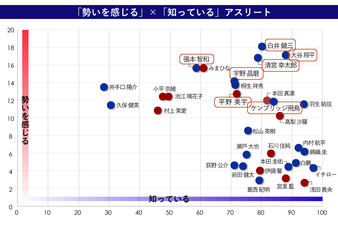「知っている」と「勢いを感じる」の2軸でアスリートを可視化してみると