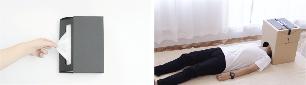 谷本:そのようなコンセプトで、現代の消費のあり方を問いながら、新しい機能を持った商品を世の中に出していきました。例えば、リフィル用のティッシュボックスを作ったり、段ボールの1人映画館を作ってみたり…。