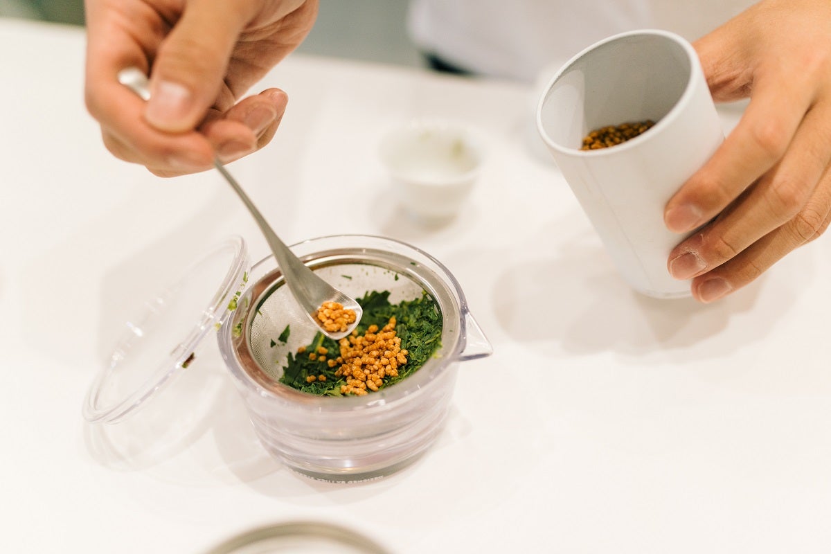 谷本:二煎目は渋みが出やすいのですが、このお茶は二煎目でも甘味と、うま味が強いのが特徴です。では次に三煎目です。今度は、玄米を足して玄米茶にしてみましょう。