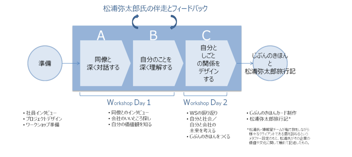 松浦:このプログラムの最後に、僕自身がその企業とどう向き合ったのかということを何らかの形でアウトプットしないと終わらないなと思ったんです。要するに、一人一人にサンキューレターみたいなものを書かせていただくんですね。その会社の人たちが気づいてないチャーミングさとか、すばらしい出来事とか、旅行へ行って、そこに住んでないからこそ知ることができたすばらしさみたいなことを、一人一人にお便りとして残すことが、このプログラムの最後のコミュニケーションかなと思ったのです。ただ、それがある種のフィードバック的なことだとちょっと違和感があったので、「旅行記」という形にさせてもらいました。