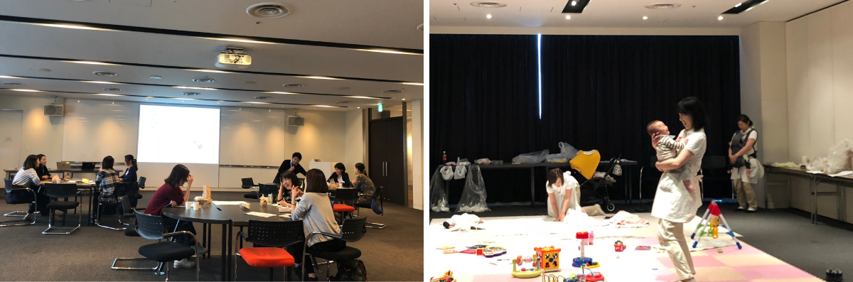 10月に実施した「HAKUHODO MAMA UNIV.」では、まず、すでに復職された方に復職後の働き方について紹介していただきました。その後、参加者への事前アンケートをもとに選んだ関心の高いテーマについて、先輩ママ社員とざっくばらんに話せる時間を設け、続いて「保活セミナー」、関連制度やサポート施策の紹介を行いました。全体でおおよそ3時間のプログラムですが、隣室に託児スペースも設置してあったので、集中して参加いただけた印象があります。託児サービスをトライアル的に活用するいい機会にもなったようです。