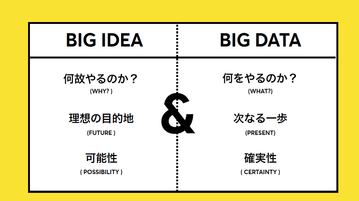 では「もういちど、ビッグアイデアの時代だ!」とデータ主義に反旗を翻すのか、というとそれも時代錯誤でしかありません。大切なのはビッグデータかビッグアイデアかという二律背反の「OR発想」に陥ることなく、両者を掛け算する「AND発想」を持つことです。