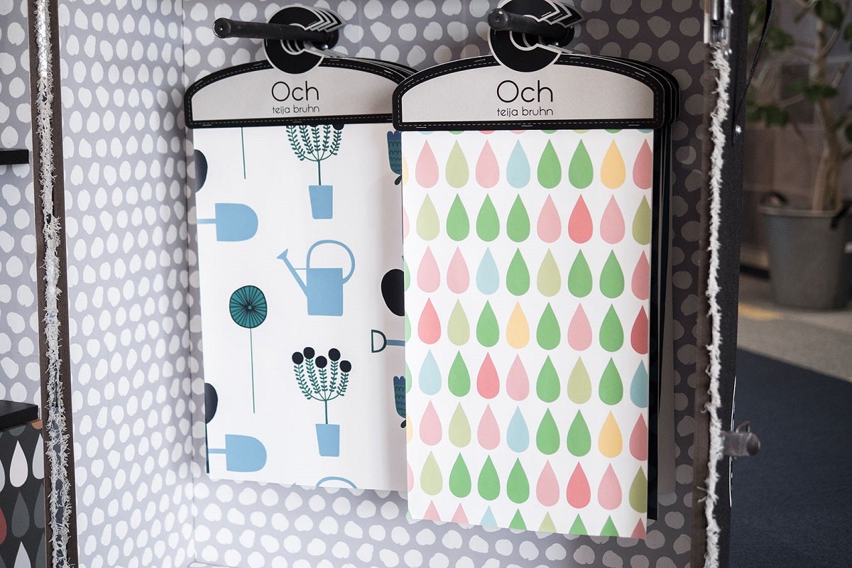 そうすると、これもまたもともと私の知り合いだった方が、「テイヤ・ブルーン(Teija Bruhn)さんというテキスタイル・デザイナーが壁紙をつくりたいとおっしゃっている」という情報を知らせてくれました。カーテンやテーブルクロス、クッションの柄をつくられているデザイナーで、世界的にも有名な方なんです。