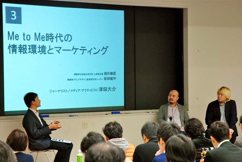 セッションでは酒井に続いて原田曜平(博報堂ブランドデザイン若者研究所)、津田大介さん(ジャーナリスト/メディア・アクティビスト)も登壇、若者の動向とこれからの情報環境などについて議論が展開されました。