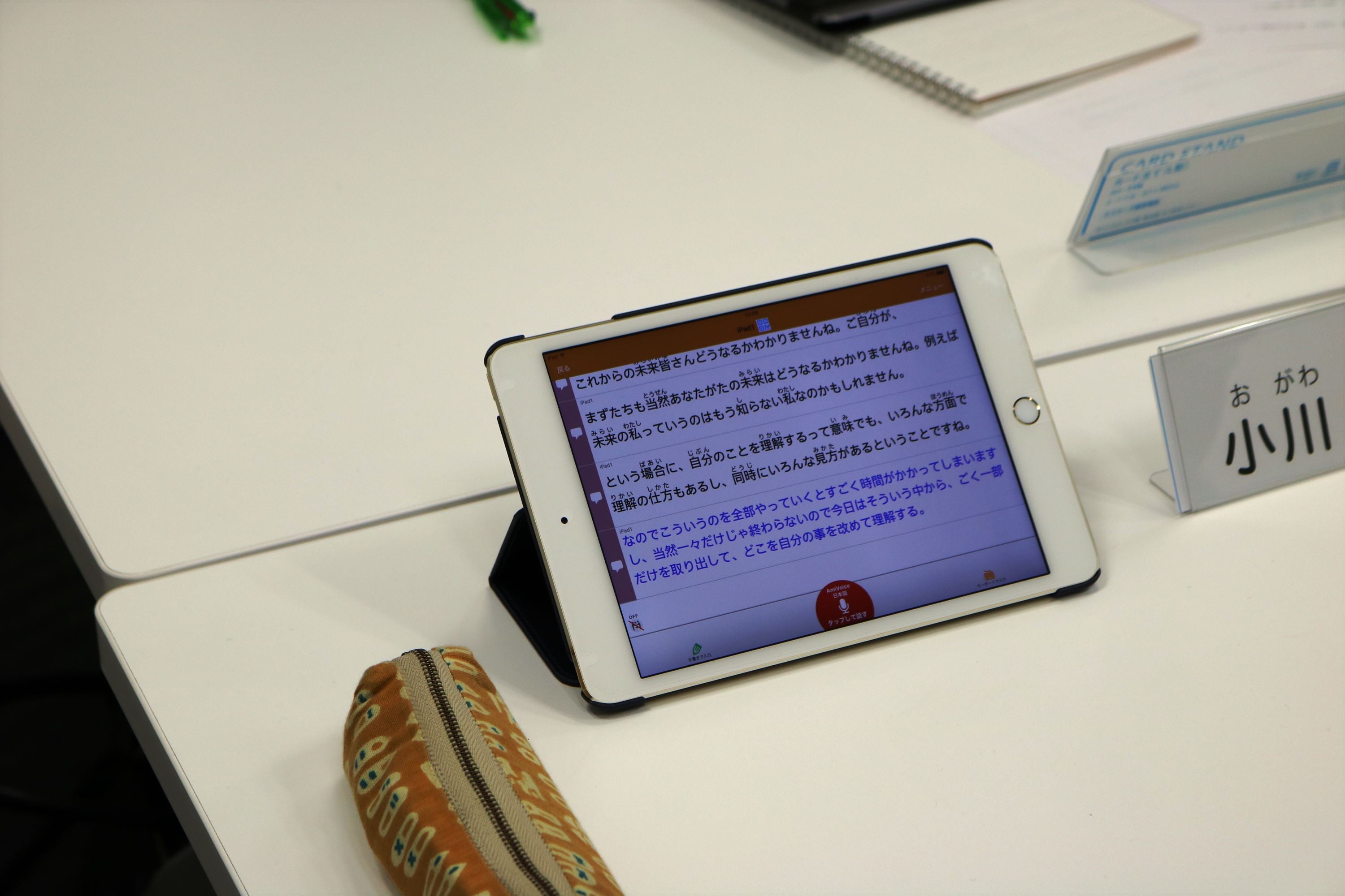 聴覚障害者がリアルタイムで会話が目で追える「UDトーク」を使用。変換率アップのために使用頻度を上げ、文字登録も弊社にて多用される言葉と特殊な単語の登録を進め、認識率をあげてスムーズなコミュニケーションを目指しています。