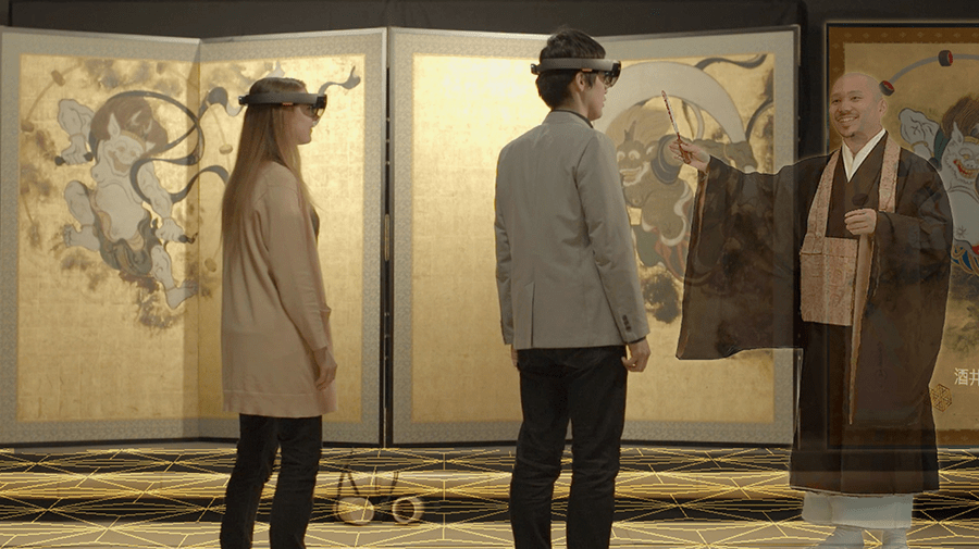 「MRミュージアムin京都」は2018年に、京都最古の禅寺と言われる大本山 建仁寺で、国宝「風神雷神図屏風」と最新のMR技術を組み合わせて実施したイベントです。マイクロソフトが開発した「HoloLens(ホロレンズ)」というMRデバイスを装着して俵屋宗達が描いた屏風を見ると、風神や雷神が三次元空間に立体的に浮かび上がります。絵画にこめられたストーリーを解説するのは3D撮影された僧侶。文化財鑑賞へのMR技術の応用においては、世界に先駆けた取り組みだと思います。