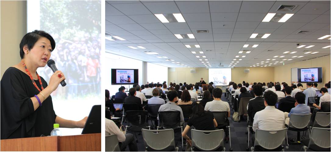 本セミナーでは、国際連合広報センターの根本かおる所長をお招きし、「誰も置き去りにしない 世界を変革するSDGs」をテーマに、SDGs採択と世界の動きについてご講演いただきました。「2015年9月の国連サミットでの採択以来、SDGsが世界中で急速に普及している。地球上の私達一人ひとりがchange maker。足元のアクションから、世界が変わる。博報堂DYグループの皆さんと一緒に、SDGsをもっと世の中に広げていきたい。」と根本所長が呼びかけ、社員がSDGsへの理解を深め、自らの業務とSDGsを結びつける貴重な機会となりました。