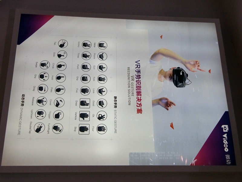 VR/ARもたくさんの製品が紹介されていました。ヘッドマウントディスプレイが、よりスリムにかっこいいデザインになっていたり、リビングの壁やソファと合わせるようなコンセプトのものもありました。マイクロソフト社のホロレンズ型のMRも数が増えてきた印象です。Pimax社は4Kから8KのVRを発表していたり、大型体感ゲーム機とVRのセットがあったり、戦闘ゲーム用のコスチュームとVRのセット、工場現場で使用するビジネス使用のARグラスなど、実際のビジネスや生活シーンへの広がりを感じました。1つ面白いなと思ったのが、Vidoo社(微動)のハンドジェスチャーを識別し操作が出来るVRです。教育やゲーム、仕事などにも使えそうですよね。ジェスチャー認識の技術はVR以外でも自動車のコントロールパネル操作にも音声認識と合わせて実現可能だそうです。GfKによるとVR市場は中国単体で16年7.5億ドルから17年16億ドルに倍増するそうです。上海の街中のショッピングモールでもゲームセンターに、VRの戦闘ゲームやライド系VRゲームがもう既に置かれていました。