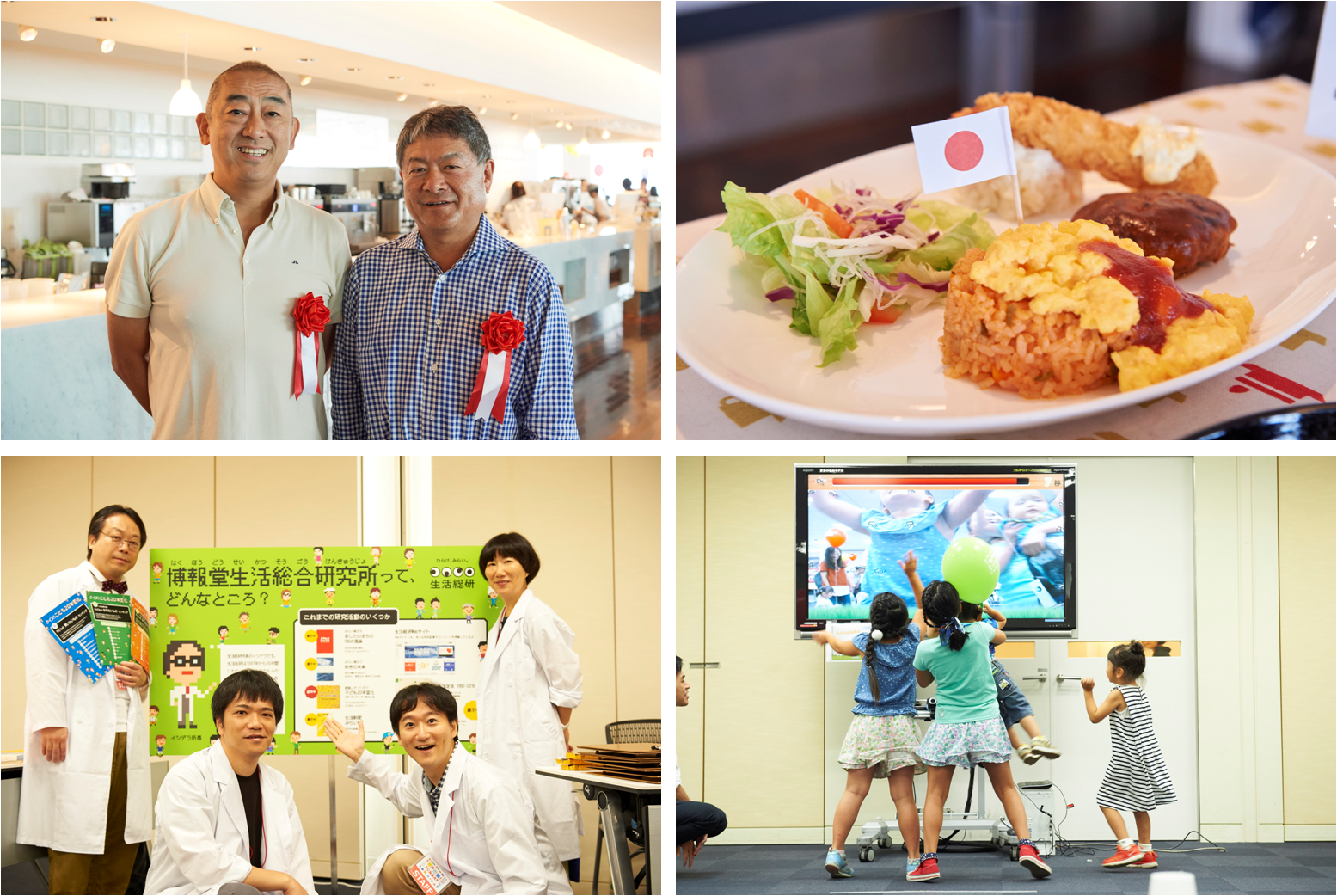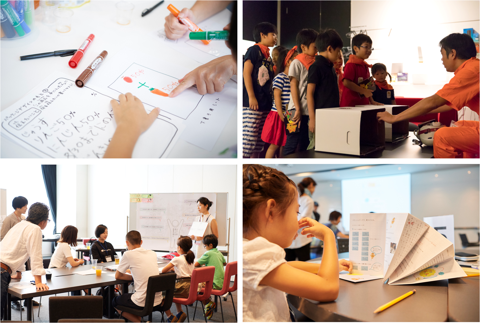 本年は、「お仕事内容まで伝える、楽しい“体験型”イベント」をテーマに、「新社長と名刺交換」「社員食堂の特別メニュー」「お菓子つかみどり」「家族の写真館」「役員室フロア見学」などのほか、「アートディレクターによる商品パッケージ教室」や「コピーライターによる作文教室」、「生活総研『子ども20年変化』クイズ」「雑誌『広告』によるアドベンチャー企画」「ブランドデザイン・こそだて家族研究所による未来のお仕事ワークショップ」など、博報堂DYグループの様々な組織・研究所が参加したオリジナル企画を多数提供。また、博報堂アイ・スタジオ、CRAFTAR、博報堂DYアウトドア等グループ各社も参加したお仕事展示も実施しました。