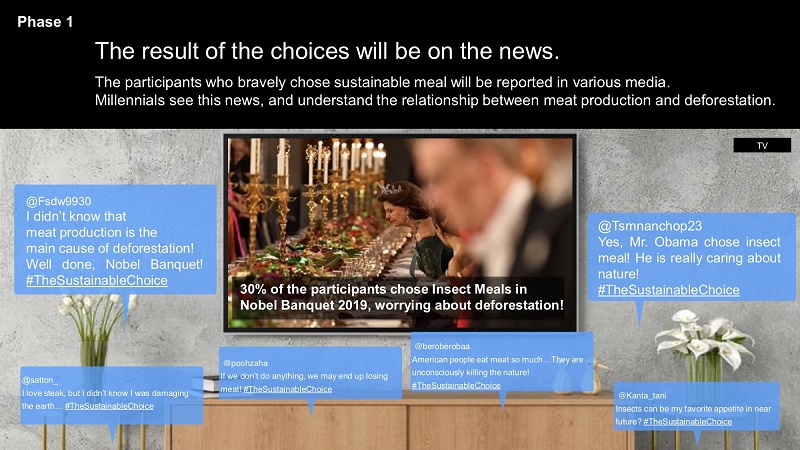 どんな料理が出されたのか、どのセレブがどちらを選んだのか、彼らが今後どんなアクションに取り組んでいくのか、全てがニュースとなって広がり、結果的にミレニアルを含む幅広い生活者がこの問題について知り、考え、自らも行動を起こしていくことにつながっていく、というストーリーを描きました。