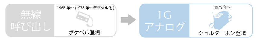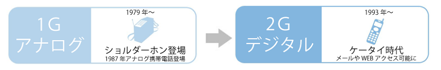 ◆1979年にアナログの1Gに。1993年にデジタルの2Gへ