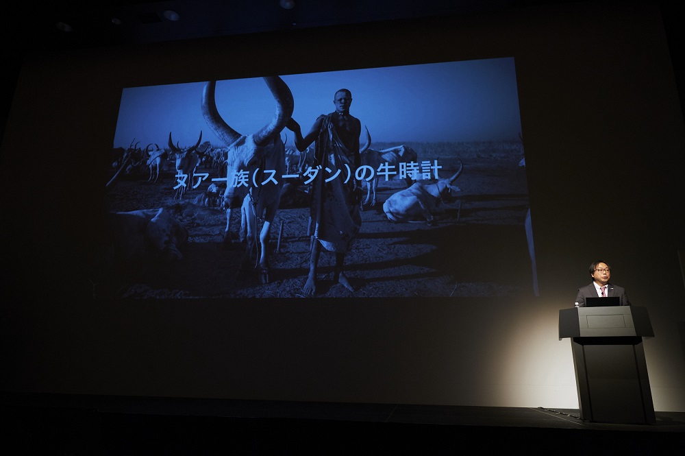 講演のはじめに、石寺所長より、時間の歴史をご紹介しました。