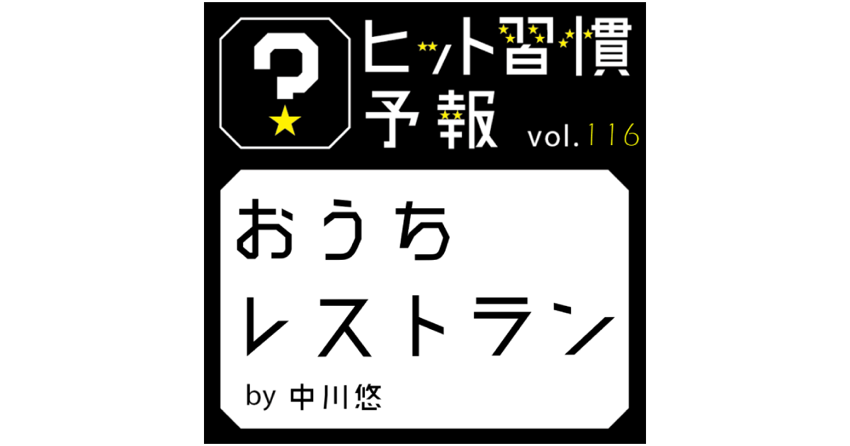 【ヒット習慣予報】 vol.116 『おうちレストラン』