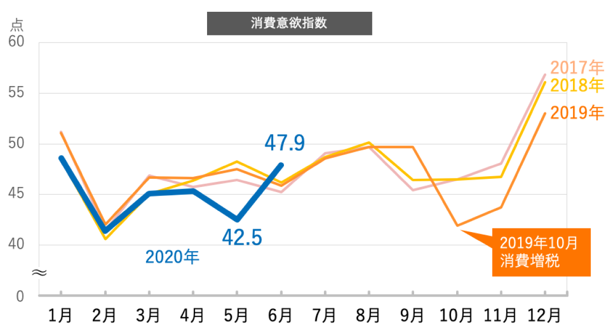 下記グラフは、生活総研が毎月発表している「消費意欲指数」というデータです。