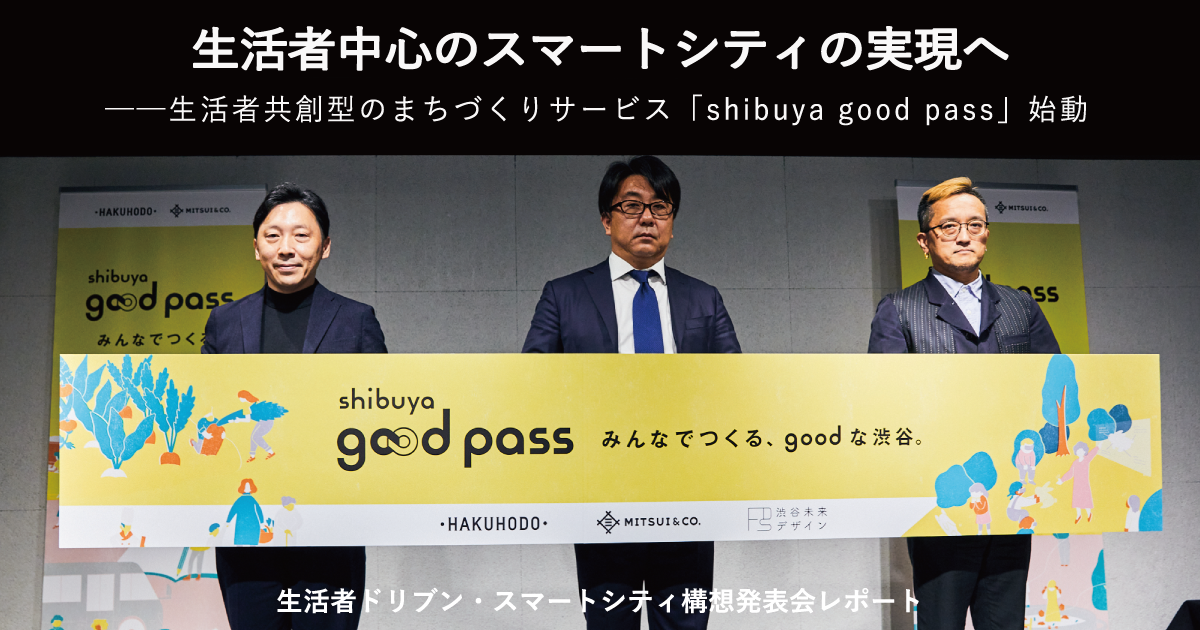博報堂は三井物産と2020年9月からスマートシティ領域で連携し、「生活者ドリブン・スマートシティ(=生活者が主役のまちづくり)」の実現に向けた取り組みを開始しています。そのコアサービスとして始動する、生活者共創型のまちづくりサービス「shibuya good pass」の構想発表会を、渋谷で開催しました。発表会に登壇したスピーカーの発言をダイジェストでお届けします。