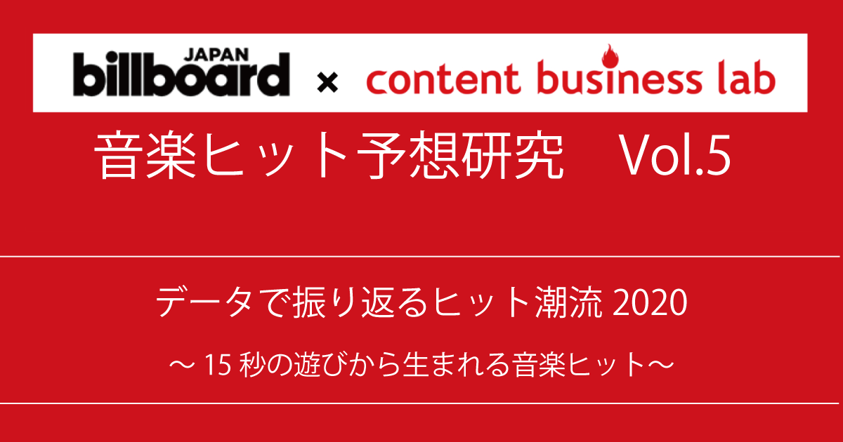 消費者動向やメディア動向をもとに、コンテンツの消費動向の調査や新規事業の支援などを行う、博報堂と博報堂DYメディアパートナーズの共同プロジェクト、コンテンツビジネスラボ。現在取り組んでいるのは、ビルボードの総合チャートを構成する、CD売上枚数やストリーミング、Twitterなどのデータやオープンデータを活用したヒット予測研究です。連載第5回目では、データとともに2020年度のヒット潮流を振り返り、2021年の音楽ヒットの展望を述べます。