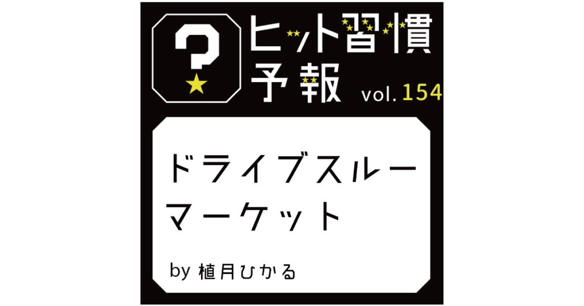 ヒット習慣を週刊で予測する連載コラム「ヒット習慣予報」の第154回目です。進化した非接触購買の一種として、何かの乗り物に乗った状態で必要な買い物だけを迅速に済ませる「ドライブスルーマーケット」という新習慣について紹介しています。