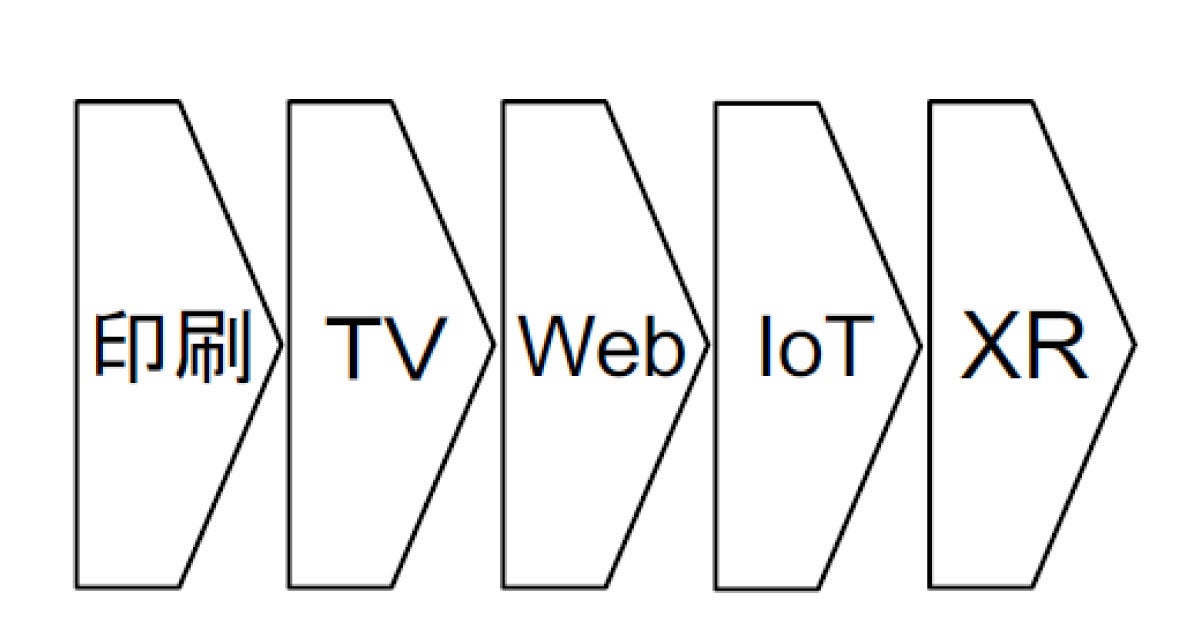約30年の広告クリエイターとしてのキャリアを振り返ると、おおよそ7年ずつの区切りで媒体領域を転じてきたことがわかる。すなわち「印刷→テレビ→Web→IoT→XR」である。これはコミュニケーションの歴史的発展そのものと相似であると、ある時期に気がついた。広告やコミュニケーションの歴史と、自分のキャリアの「領域を転じる歴史」が重なっているということは、我ながら非常に興味深い。