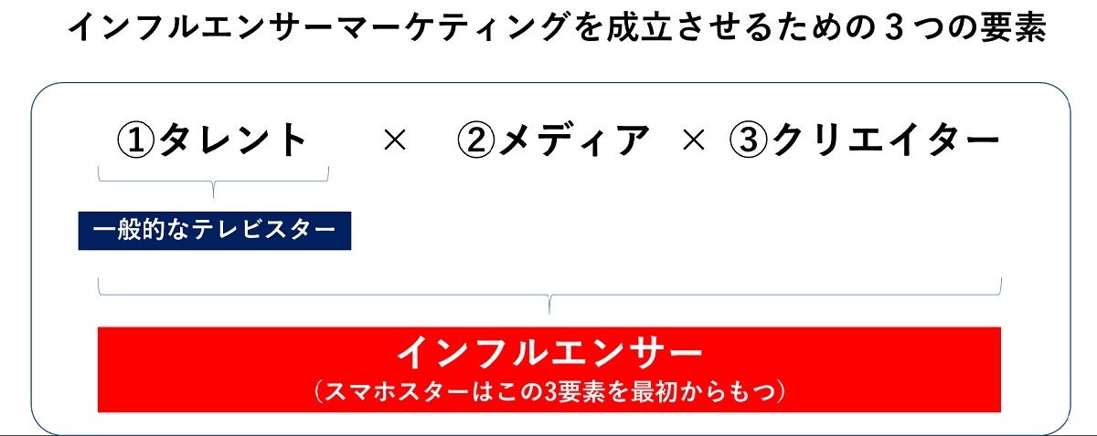 先ほどインフルエンサーはSNS上のスマホスターだけではないと言いましたが、スマホスターには企業の情報発信活動において魅力的な3つの機能が最初から備わっているので、インフルエンサーマーケティングはSNS上で行うものというイメージがつきやすくなっていると思います。